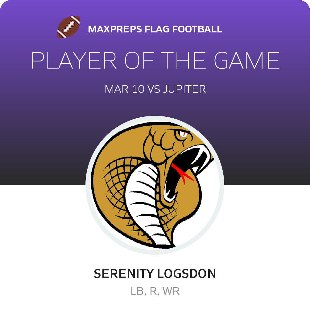 The Jupiter (FL) varsity flag football team lost Thursday's away conference game against Central (Fort Pierce, FL) by a score of 6-0.