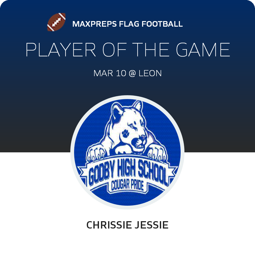 Congratulations to #19 Chrissie Jessie for being selected the Godby Girls Flag Football Player of the Game.