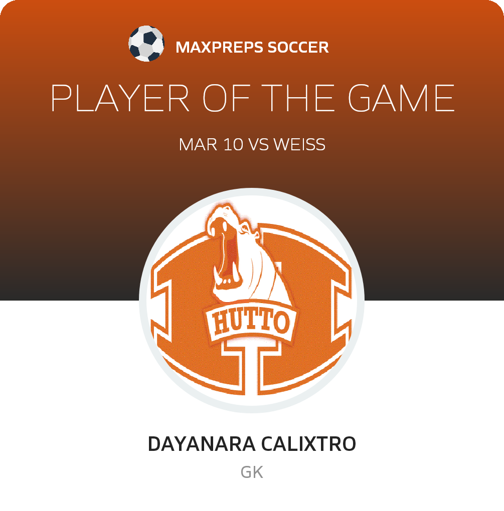 Congratulations to #0 Dayanara Calixtro for being selected the Hutto Girls JV Soccer Player of the Match.