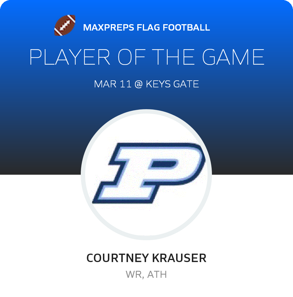 Congratulations to #11 Courtney Krauser for being selected the Palmetto Girls Flag Football Player of the Game.