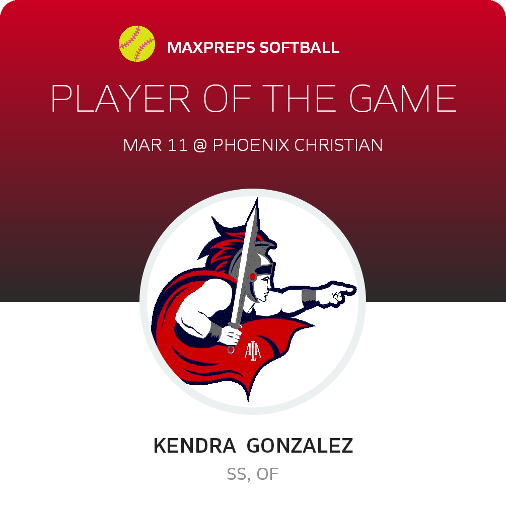 Congratulations to #5 Kendra Gonzalez for being selected the ALA - Ironwood Softball Player of the Game.