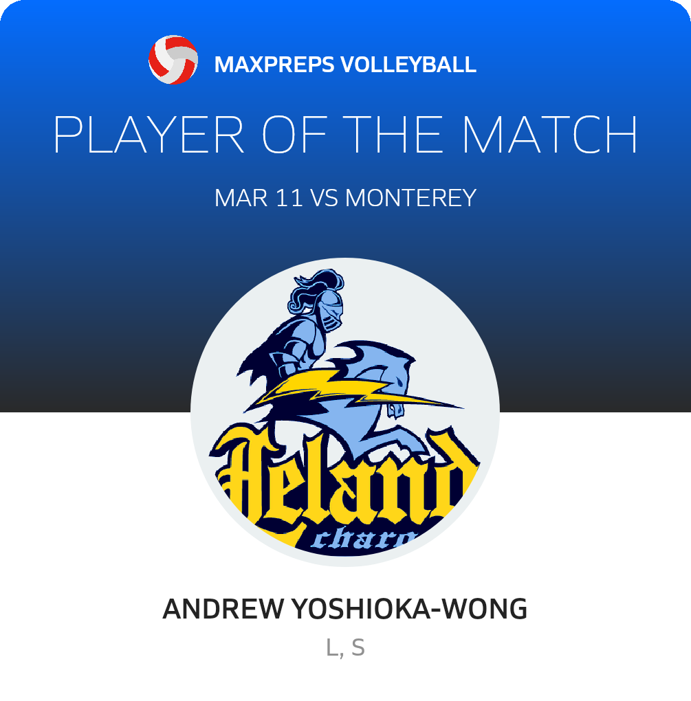 Congratulations to #4 Andrew Yoshioka-Wong for being selected the Leland Boys Volleyball Player of the Match.