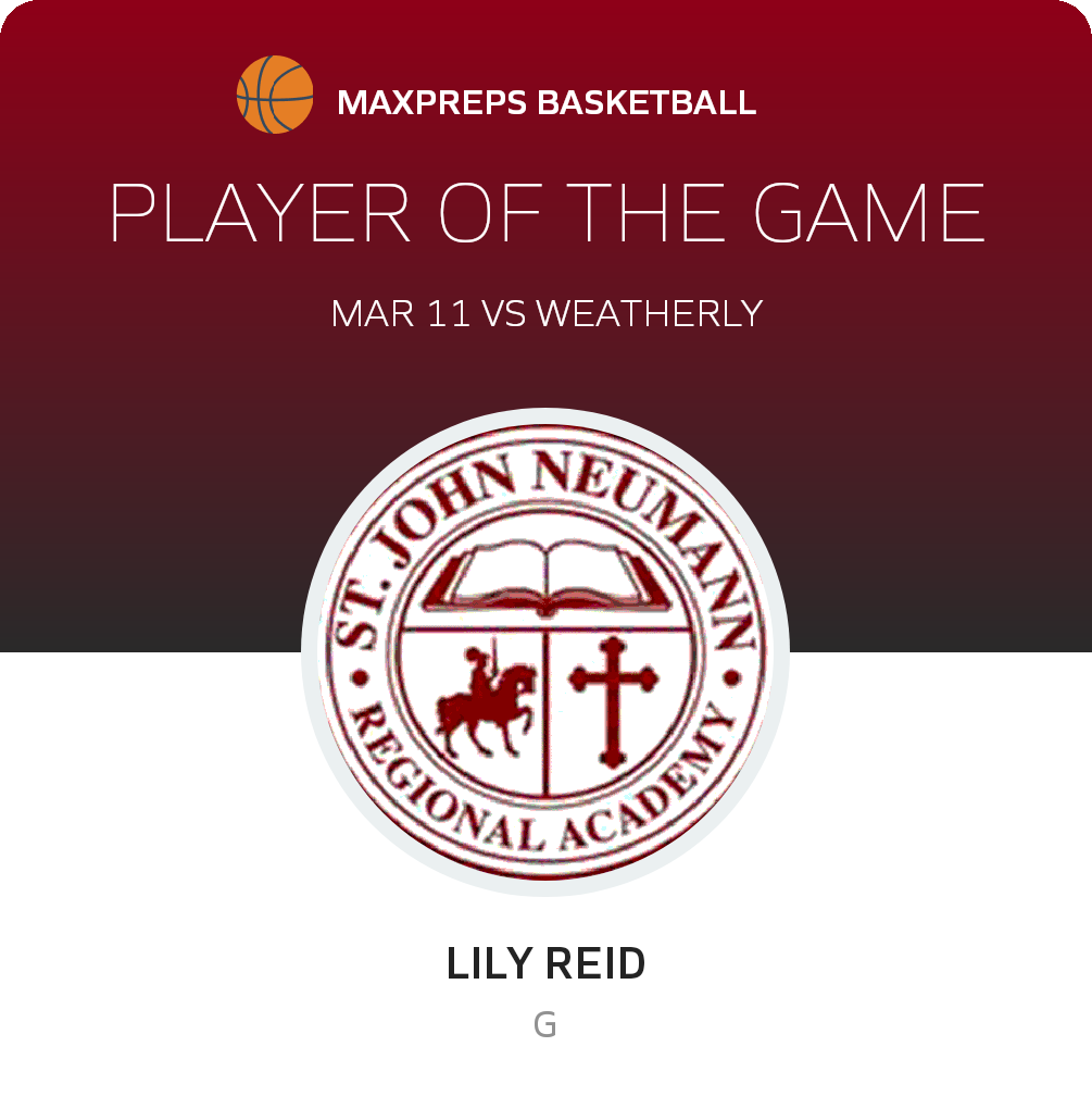 Congratulations to #3 Lily Reid for being selected the Neumann Regional Academy Girls Basketball Player of the Game.