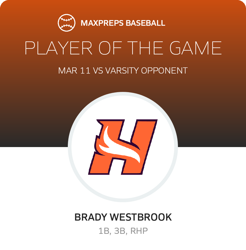 Congratulations to #00 Brady Westbrook for being selected the Tyler HEAT Baseball Player of the Game.
