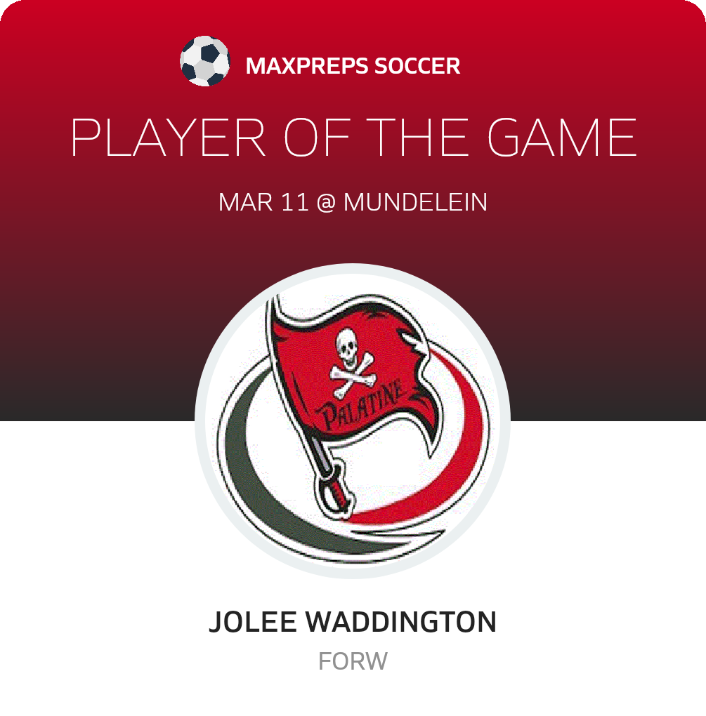 Congratulations to #5 Jolee Waddington for being selected the Palatine Girls Soccer Player of the Match.