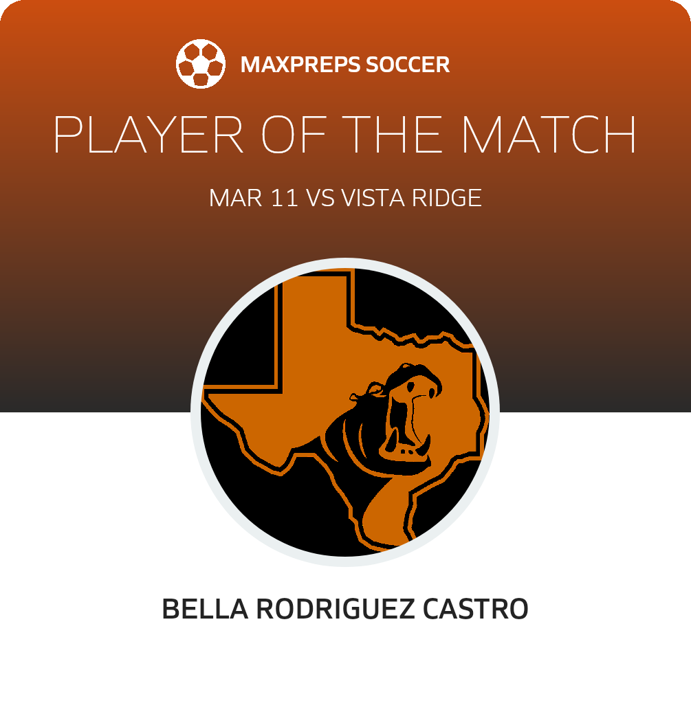 Congratulations to #10 Bella Rodriguez Castro for being selected the Hutto Girls JV Soccer Player of the Match.
