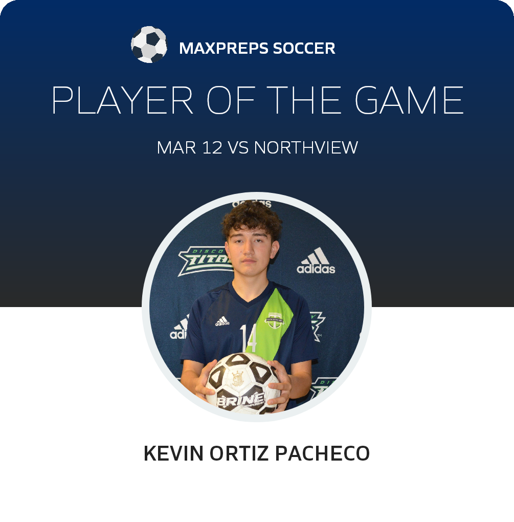 Congratulations to #14 Kevin Ortiz Pacheco for being selected the Discovery JV Soccer Player of the Match.