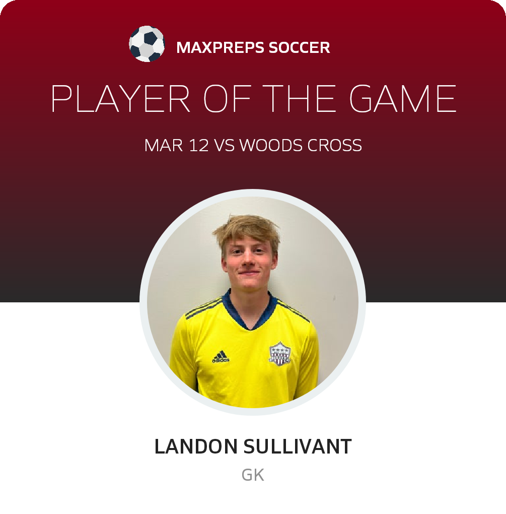 Congratulations to #1 Landon Sullivant for being selected the Jordan Soccer Player of the Match.