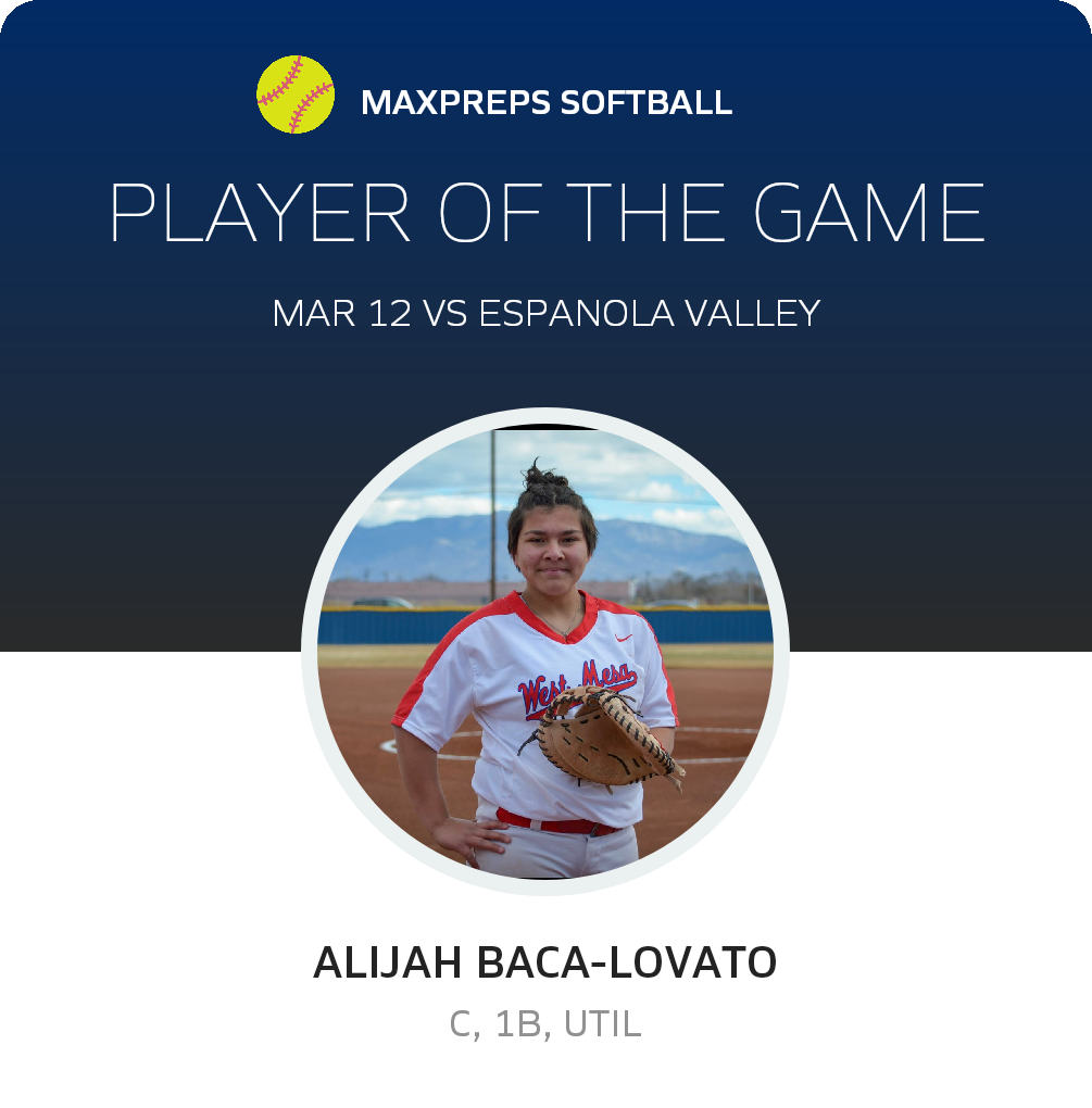 March 12, 2022: Espanola, NM 87532 The West Mesa Mustangs (Albuquerque, NM) softball routed the host Espanola Valley Sundevils (Espanola, NM), 14-0 in Saturday's non-league bout.