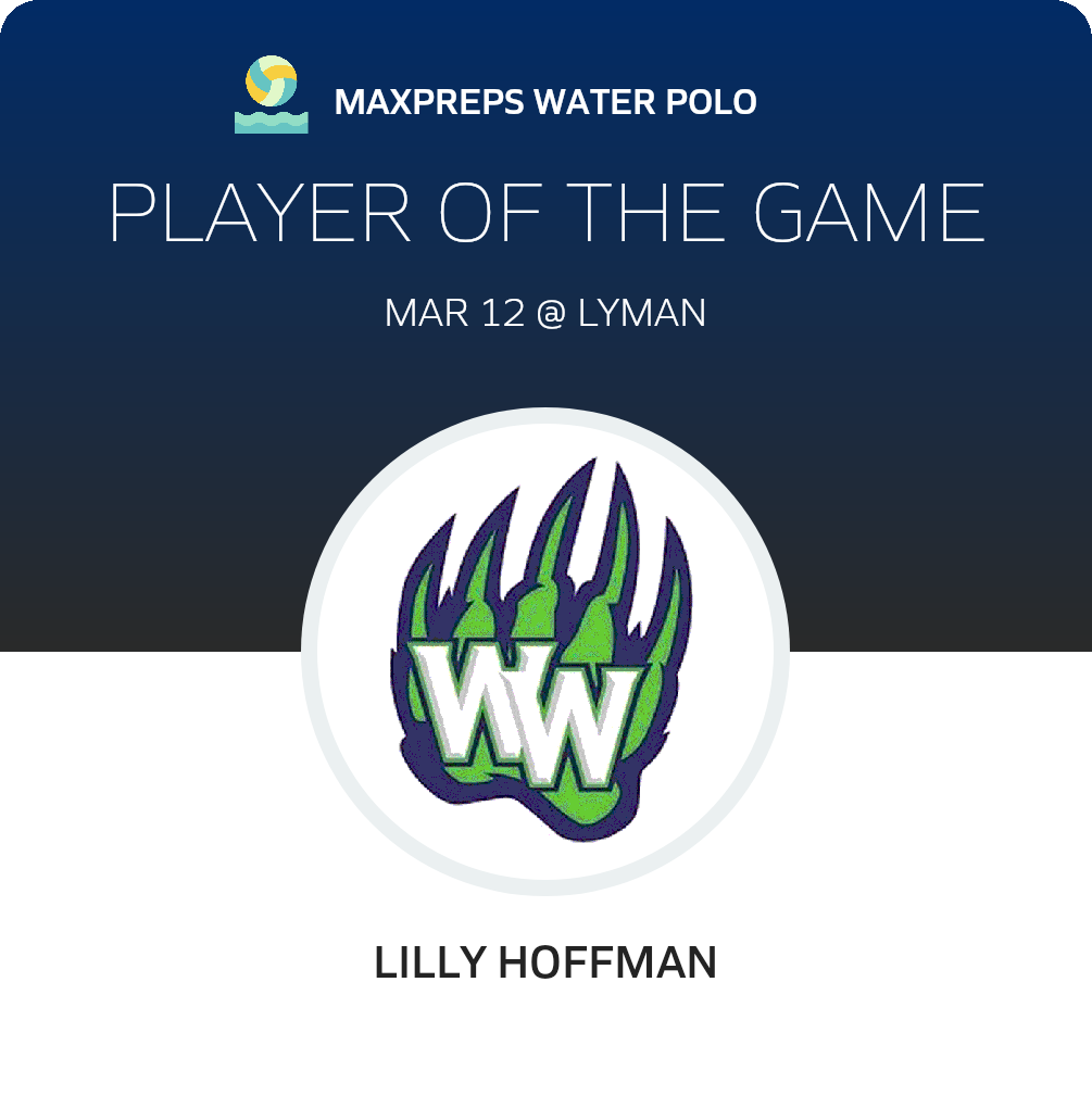Congratulations to #6 Lilly Hoffman for being selected the Windermere Girls Water Polo Player of the Game.