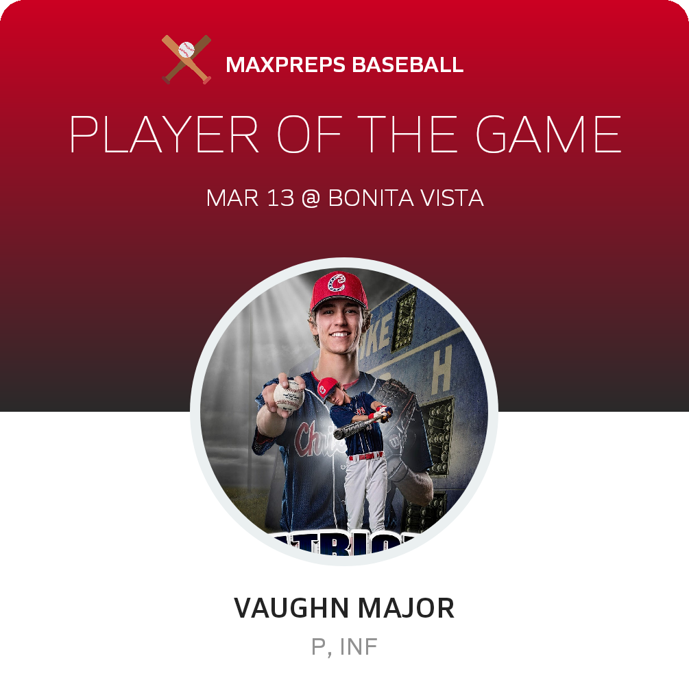 March 13, 2023: Chula Vista, CA 91913 The Christian Patriots the host Bonita Vista Barons baseball team by a count of 4-2 in Monday's non-league bout.
