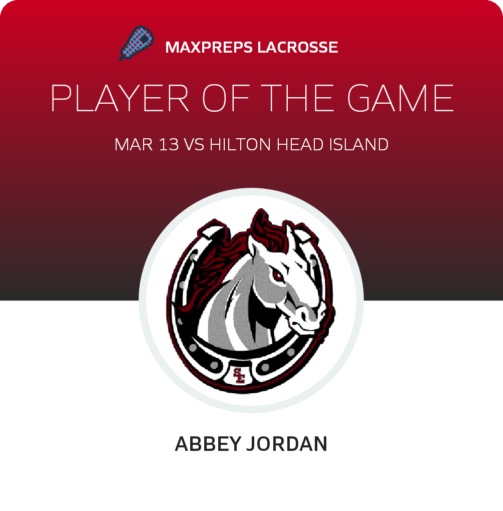 Congratulations to #5 Abbey Jordan for being selected the South Effingham Girls JV Lacrosse Player of the Game.