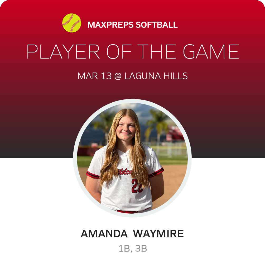 March 13, 2024: Laguna Hills, CA 92653 The Redlands East Valley Wildcats (Redlands, CA) softball routed the host Laguna Hills Hawks (Laguna Hills, CA), 19-2 in Wednesday's non-league bout.