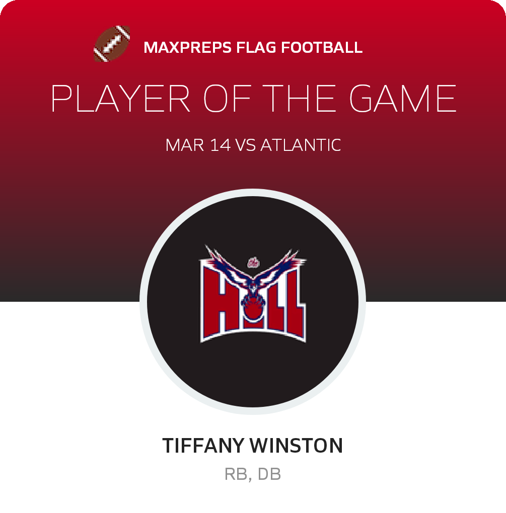 Congratulations to #9 Tiffany Winston for being selected the Forest Hill Girls Flag Football Player of the Game.