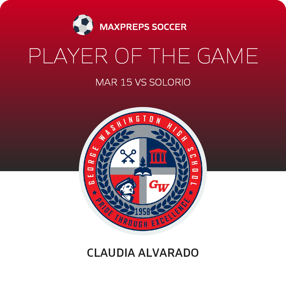 Congratulations to #5 Claudia Alvarado for being selected the Chicago Washington Girls Soccer Player of the Match.
