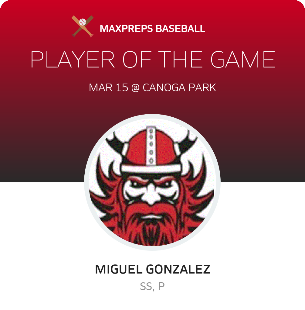 March 15, 2024: Canoga Park, CA 91303 The Monroe Vikings baseball team scored 12 runs and limited the host Canoga Park Hunters to 7 in the Vikings non-league victory on Friday.