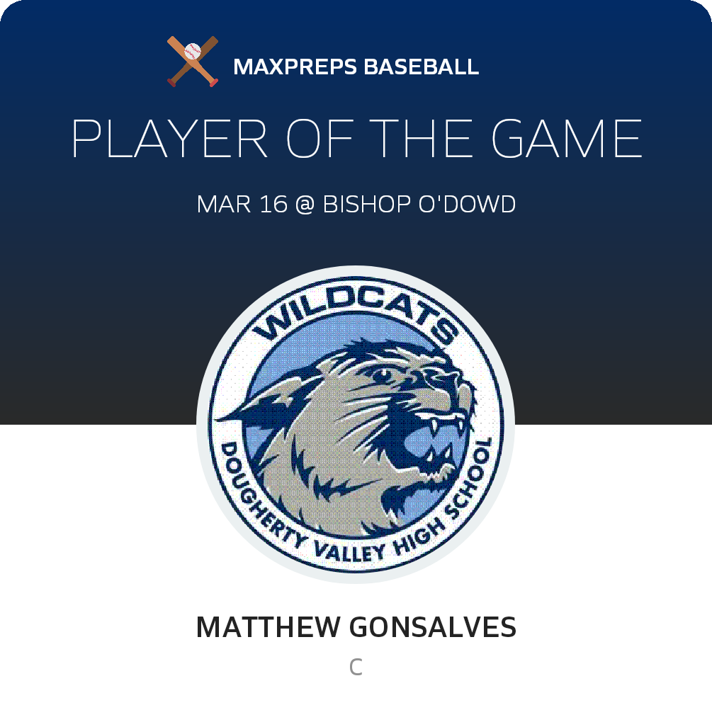 March 16, 2022: Oakland, CA 94605 The Dougherty Valley Wildcats baseball team scored 5 runs and limited the host Bishop O'Dowd Dragons to 0 in the Wildcats non-league victory on Wednesday.