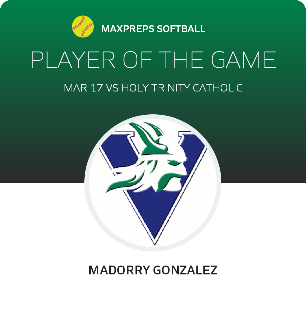 Congratulations to #7 Madorry Gonzales for being selected the Vanguard College Prep Softball Player of the Game.