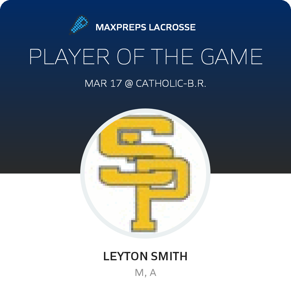 Congratulations to #2 Leyton Smith for being selected the St. Paul's Lacrosse Player of the Game.