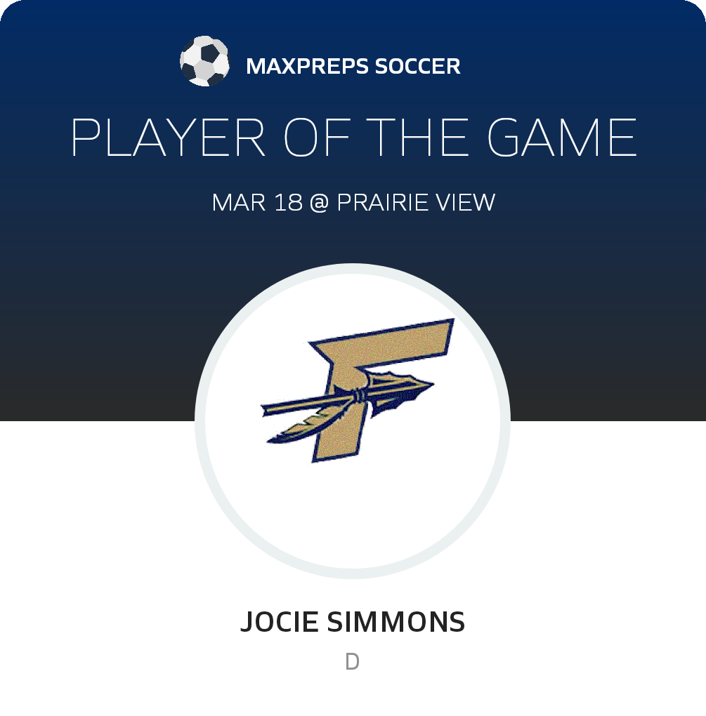 Congratulations to #2 Jocie Simmons for being selected the Frederick Girls Soccer Player of the Match.