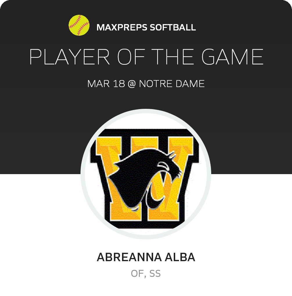 Congratulations to #6 Abreanna Alba for being selected the Watsonville Softball Player of the Game.