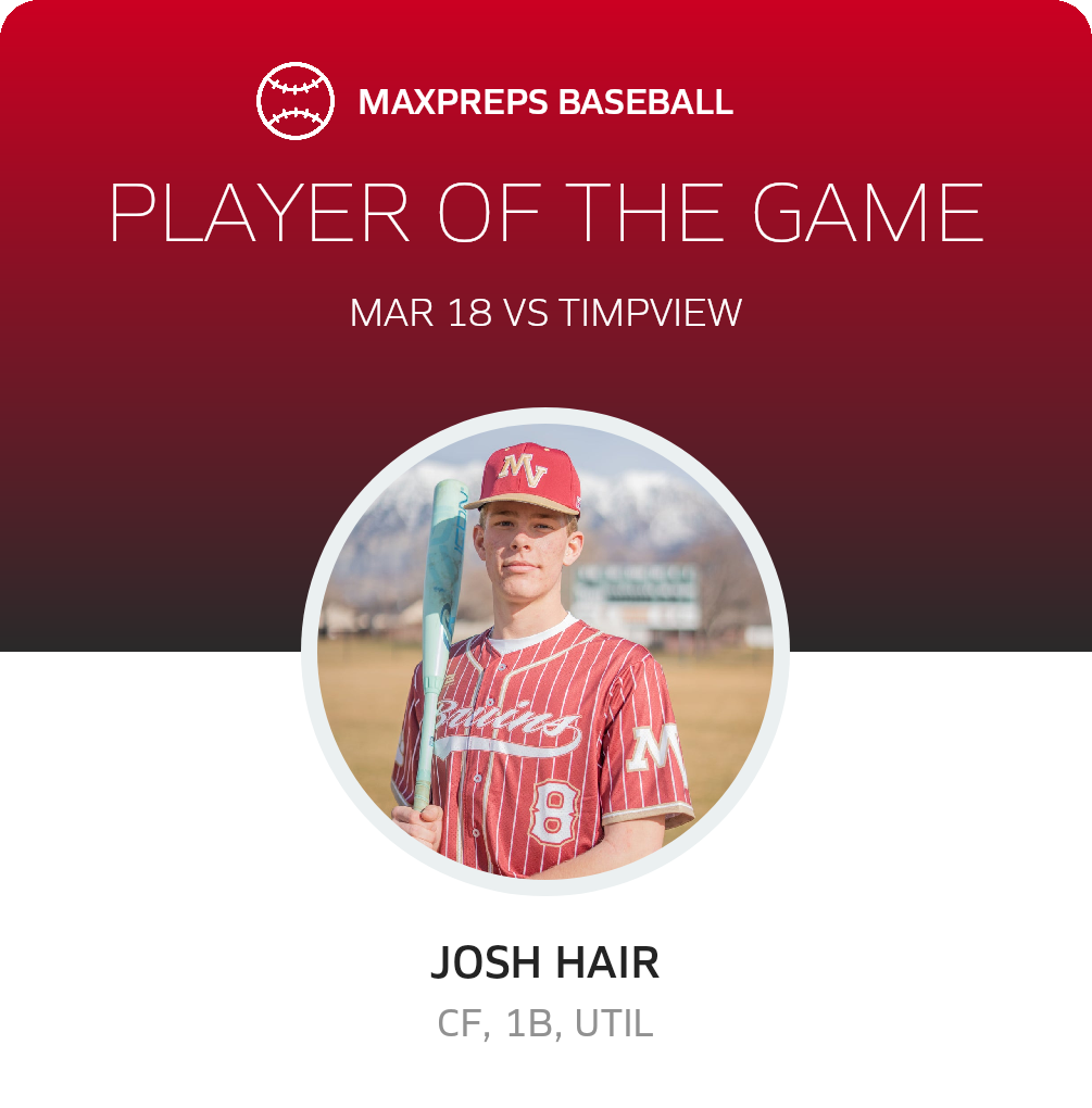 March 18, 2026: Orem, UT 84058 The Mountain View Bruins (Orem, UT) baseball got by the visiting Timpview Thunderbirds (Provo, UT), 6-5 in Wednesday's non-league bout.