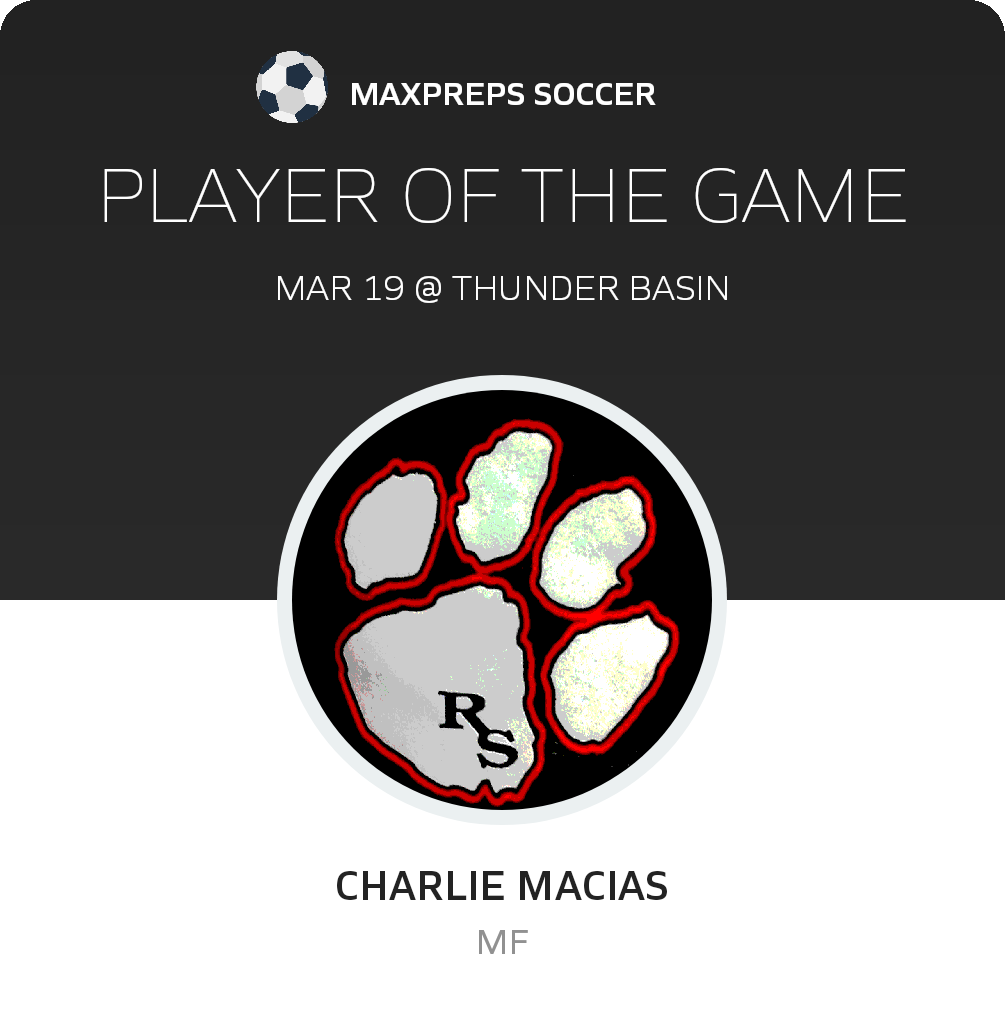 Congratulations to #1 Charlie Macias for being selected the Rock Springs JV Soccer Player of the Match.
