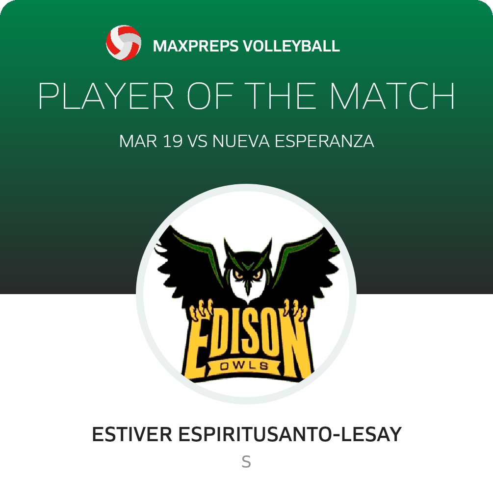 Congratulations to #3 Estiver Espiritusanto-Lesay for being selected the Thomas A. Edison Boys Volleyball Player of the Match.