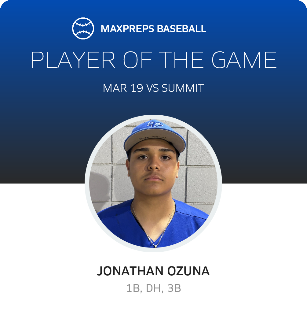March 19, 2026: Rialto, CA 92376 In Thursday's league game, the visiting Summit SkyHawks baseball team scored a close 5-1 win over the Rialto Knights.