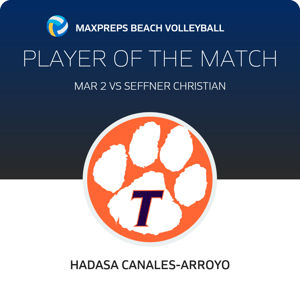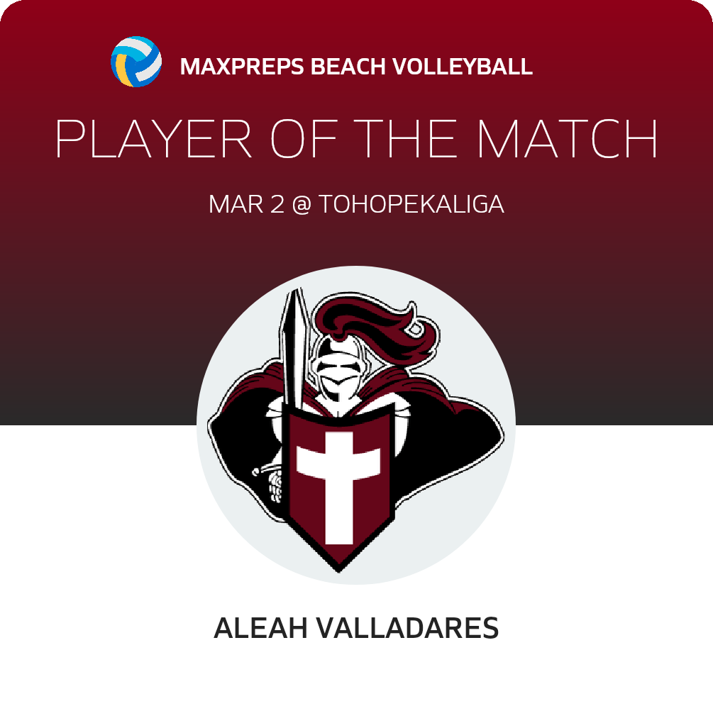Congratulations to #9 Aleah Valladares for being selected the Seffner Christian Beach Volleyball Player of the Match.
