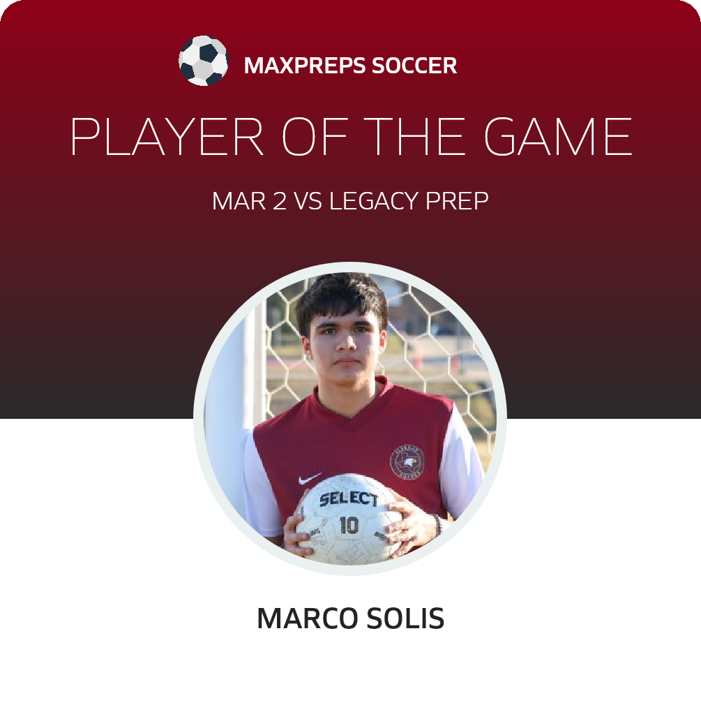 Congratulations to #6 Marco Solis for being selected the International Leadership of Texas Garland Soccer Player of the Match.