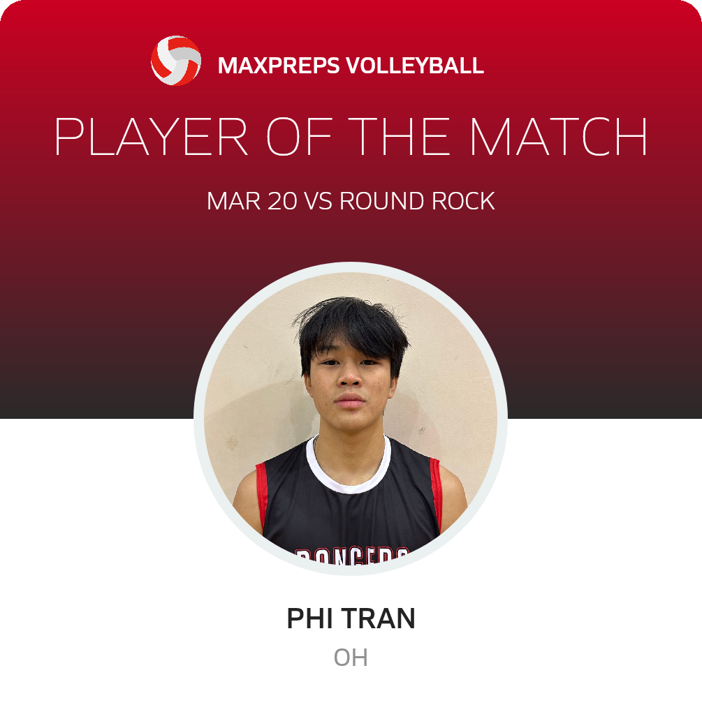 March 20, 2024: Cedar Park, TX 78613 The Vista Ridge Rangers held off the visiting Round Rock Dragons volleyball team by a score of 3-2 in Wednesday's league test.