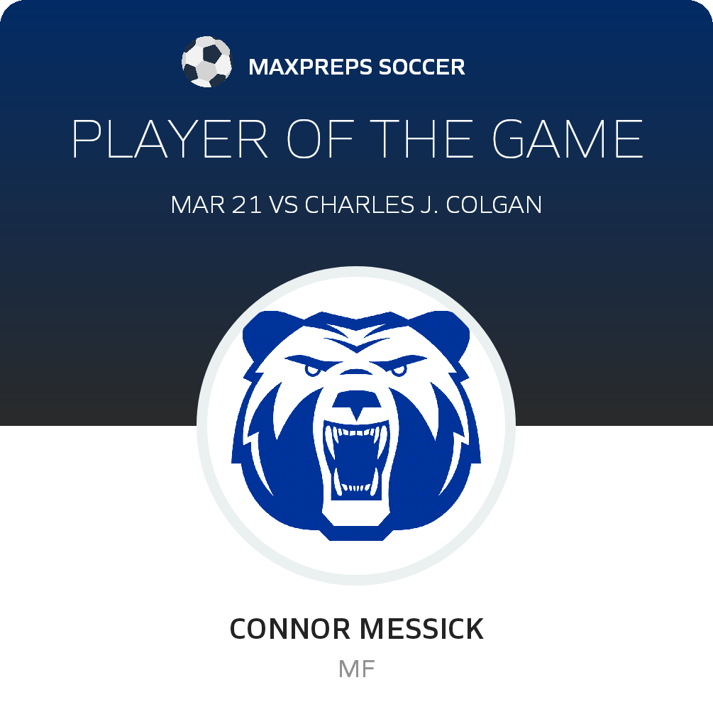 Congratulations to #2 Connor Messick for being selected the Forest Park Soccer Player of the Match.