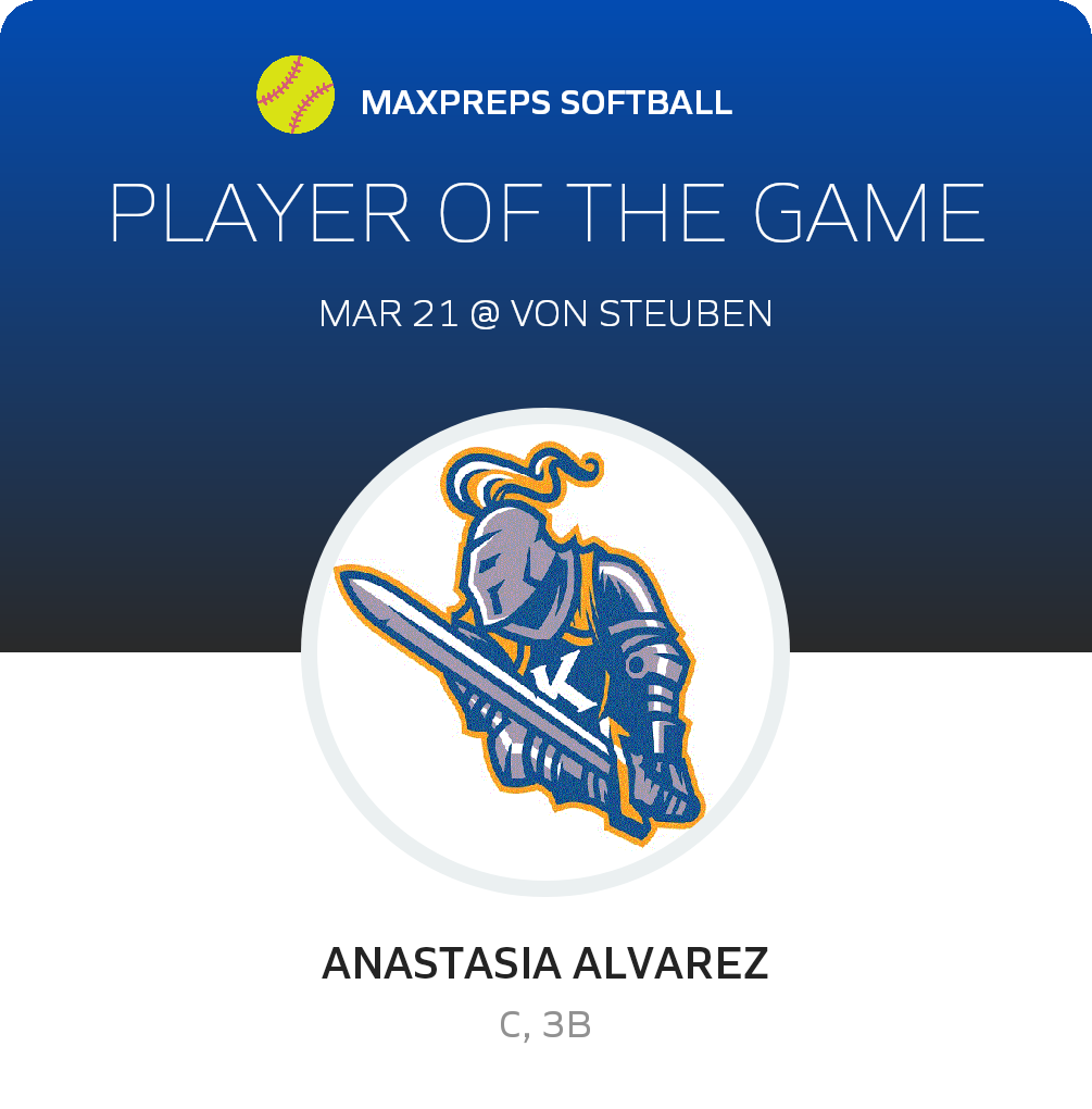 Congratulations to #10 Anastasia Alvarez for being selected the Kennedy Softball Player of the Game.