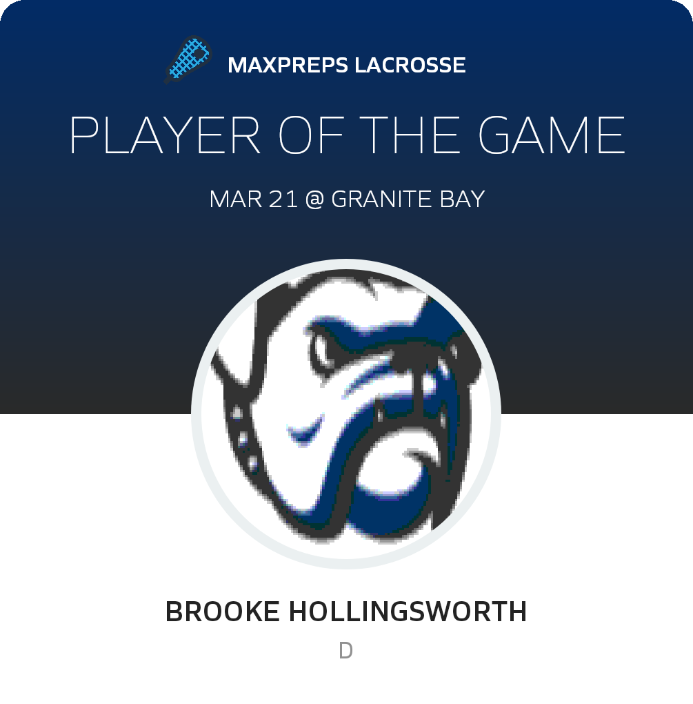 March 21, 2023: Granite Bay, CA 95746 In Tuesday's league contest, the Granite Bay Grizzlies (Granite Bay, CA) lacrosse squad routed the visiting Folsom Bulldogs (Folsom, CA), by a count of 21-2.