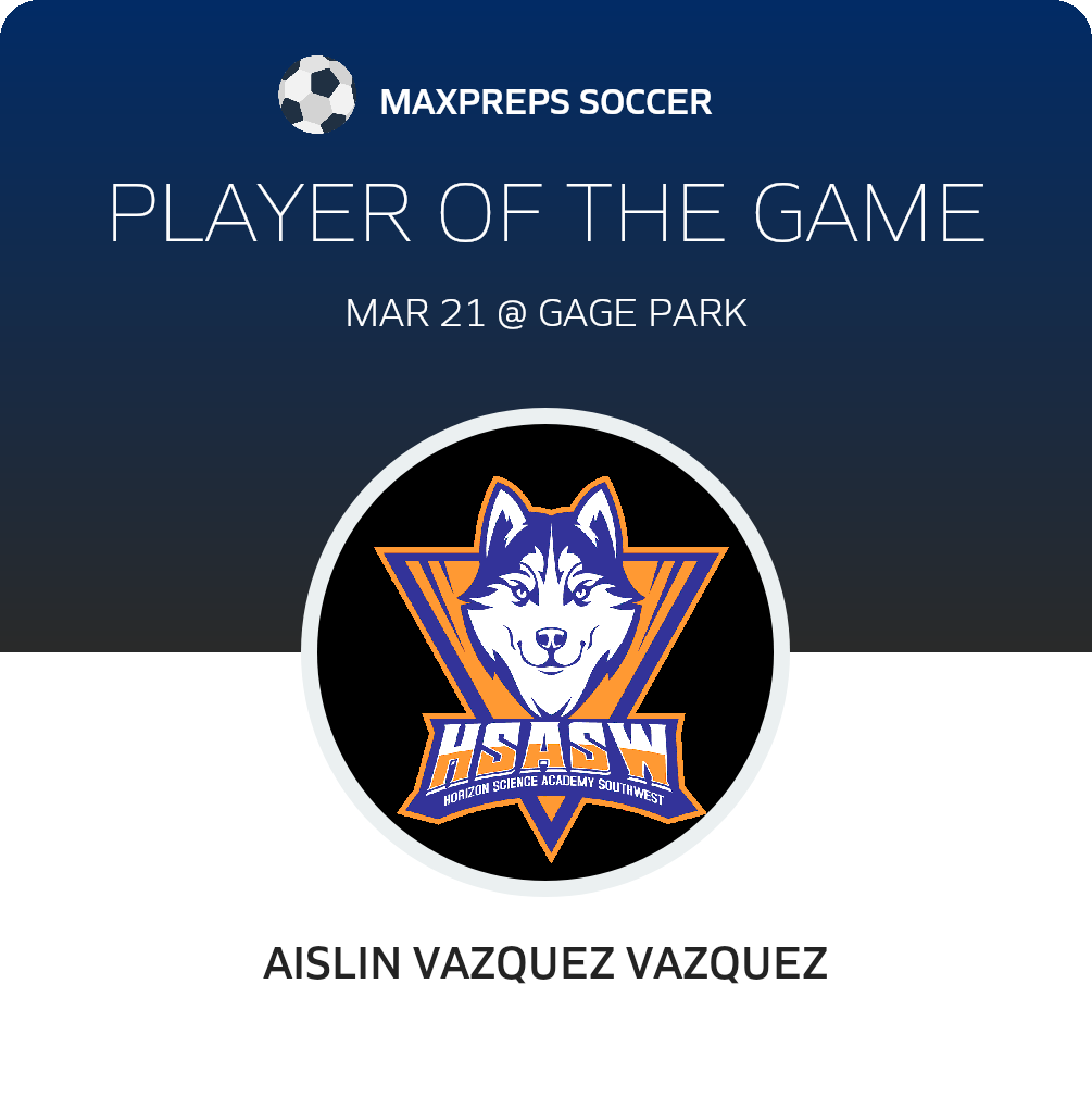 Congratulations to #18 Aislin Vazquez Vazquez for being selected the Horizon Science Academy-Southwest Girls Soccer Player of the Match.