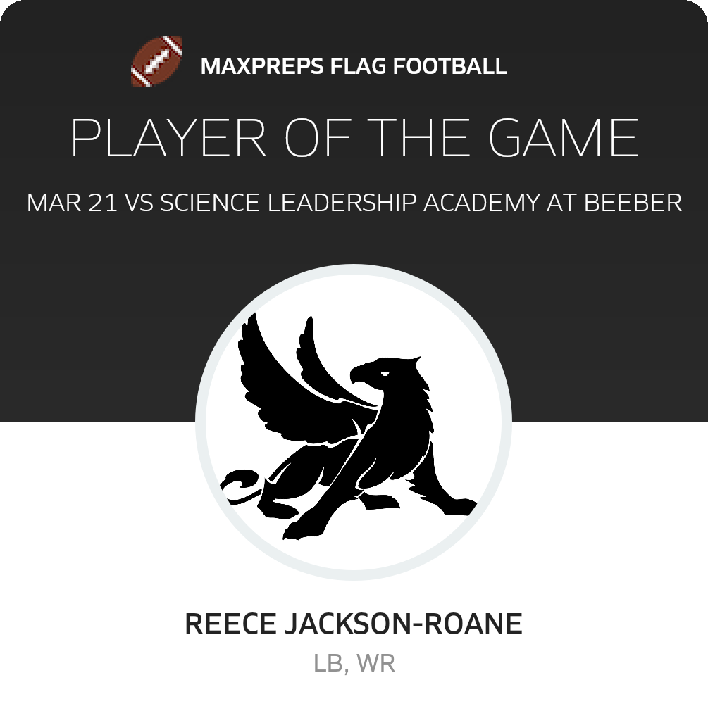 Congratulations to #5 Reece Jackson-Roane for being selected the Academy at Palumbo Girls Flag Football Player of the Game.
