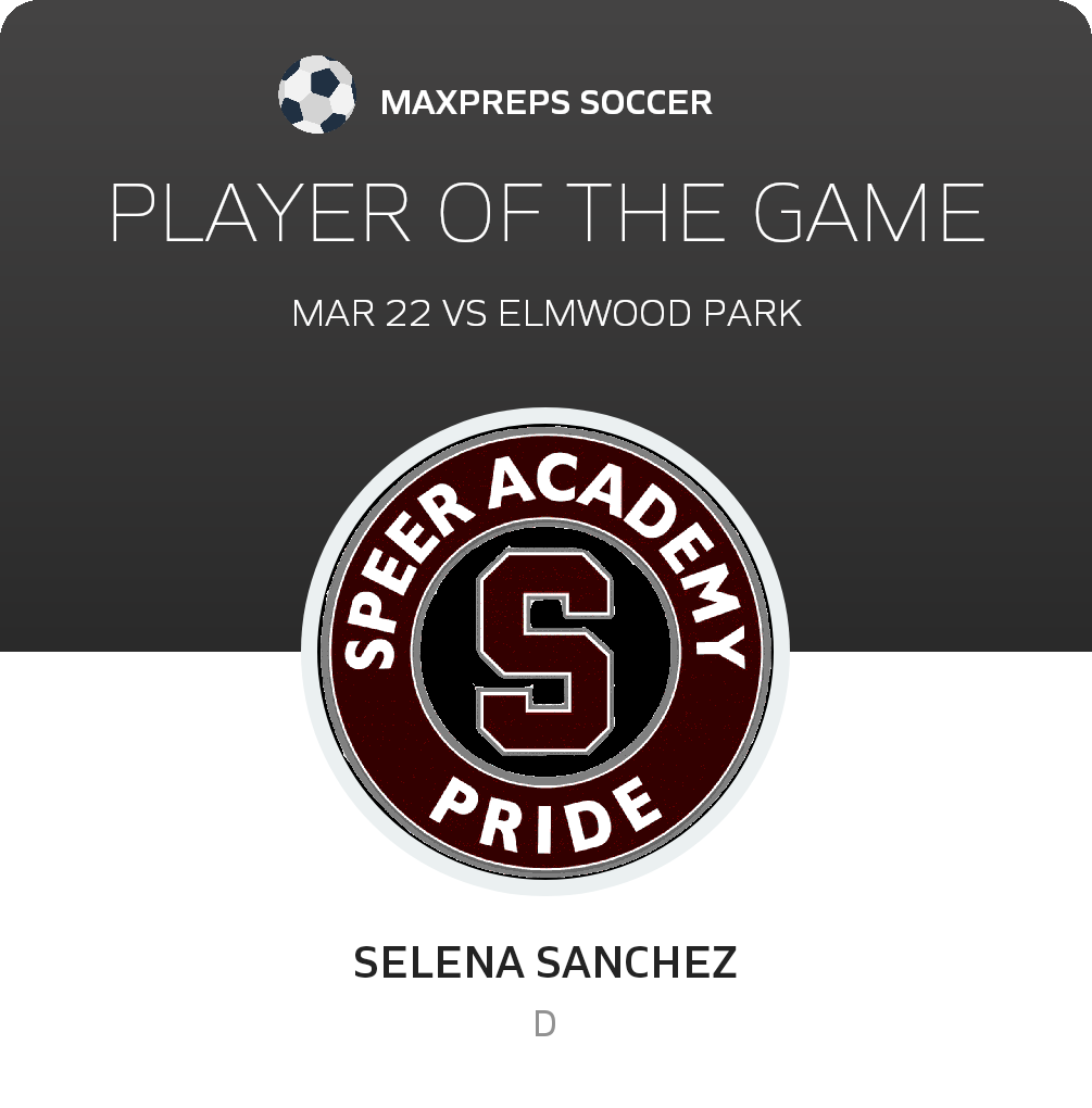 Congratulations to #23 Selena Sanchez for being selected the ITW David Speer Academy Girls JV Soccer Player of the Match.