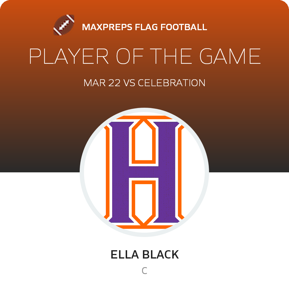 Congratulations to Ella Black for being selected the Horizon Girls JV Flag Football Player of the Game.