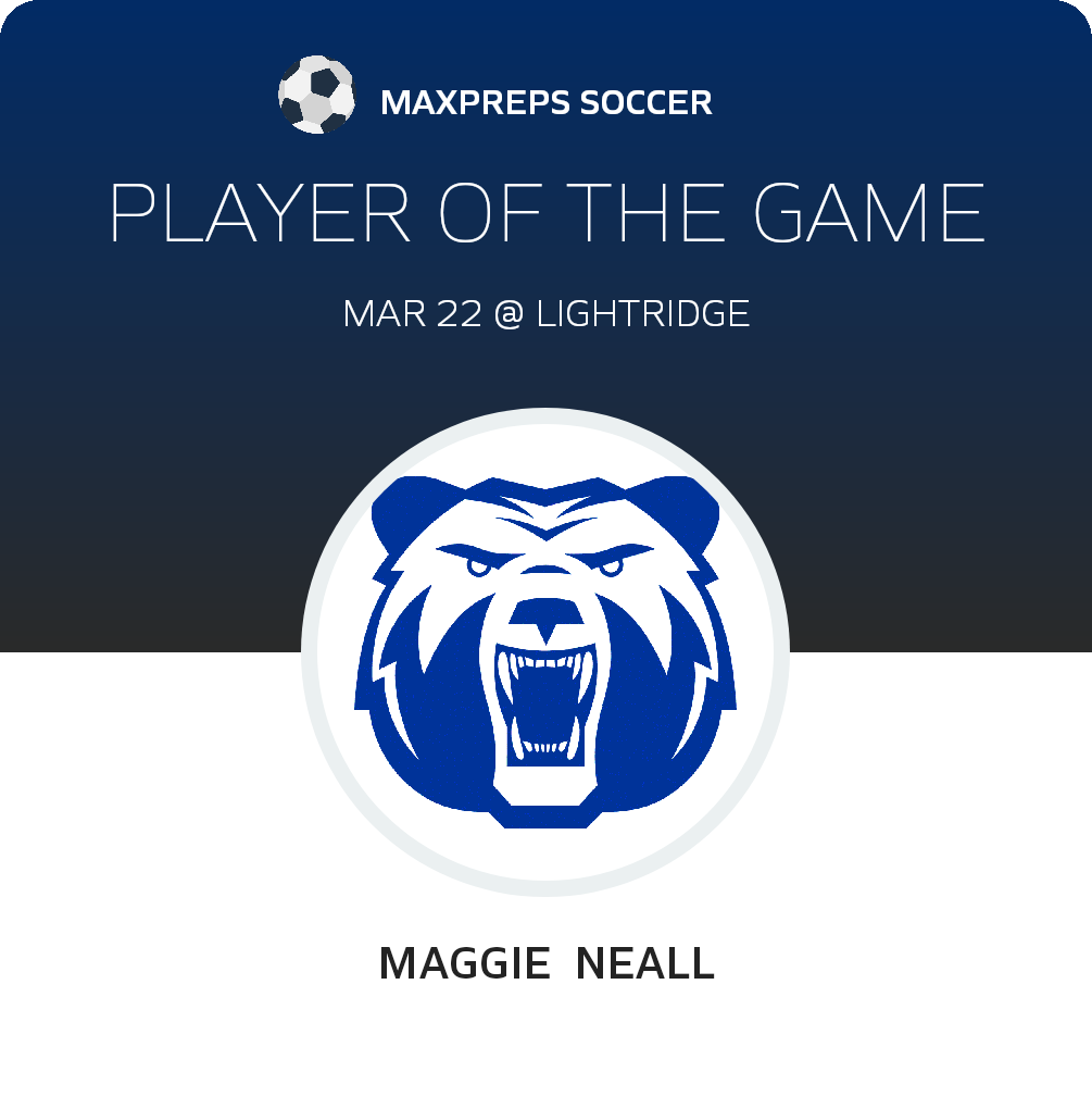 Congratulations to #10 Maggie Neall for being selected the Forest Park Girls Soccer Player of the Match.