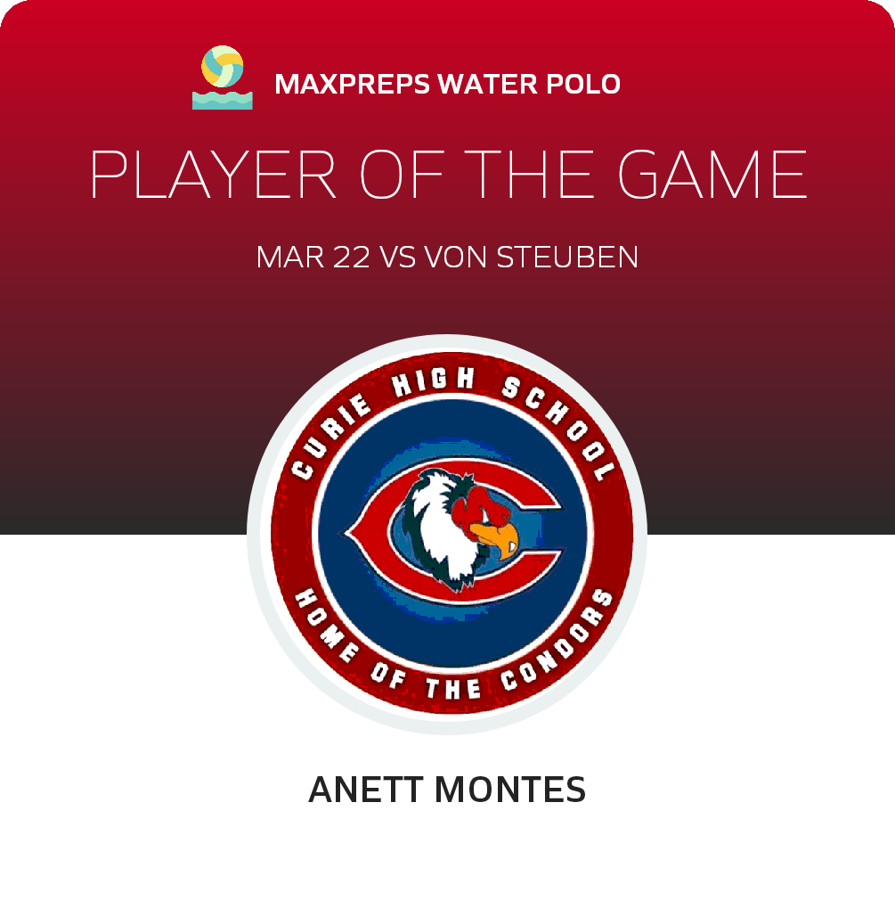 Congratulations to #10 Anett Montes for being selected the Curie Girls Water Polo Player of the Game.