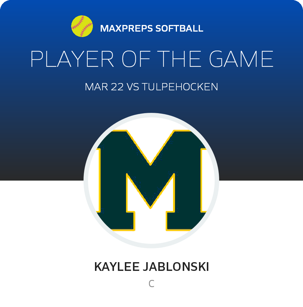 Congratulations to #12 Kaylee Jablonski for being selected the Muhlenberg Softball Player of the Game.
