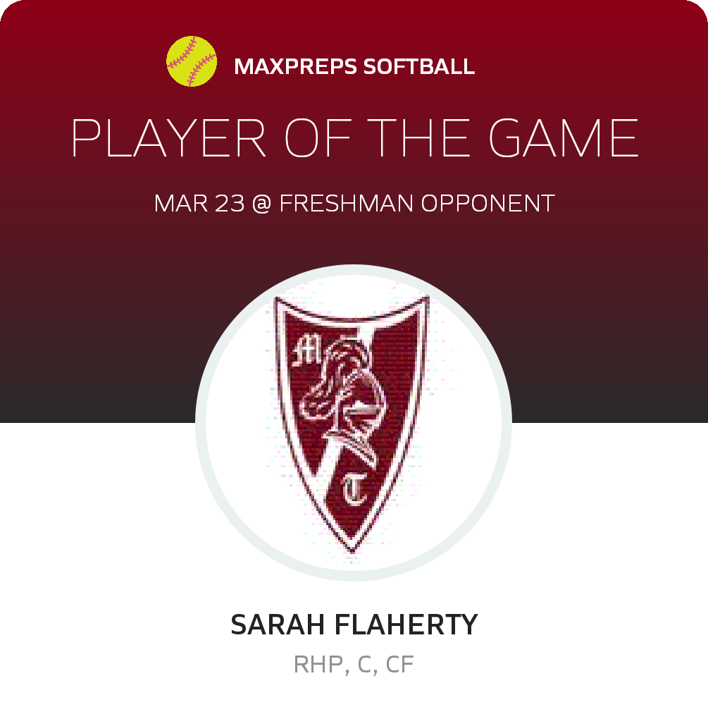 Congratulations to #45 Sarah Flaherty for being selected the Metro Tech Freshman Softball Player of the Game.