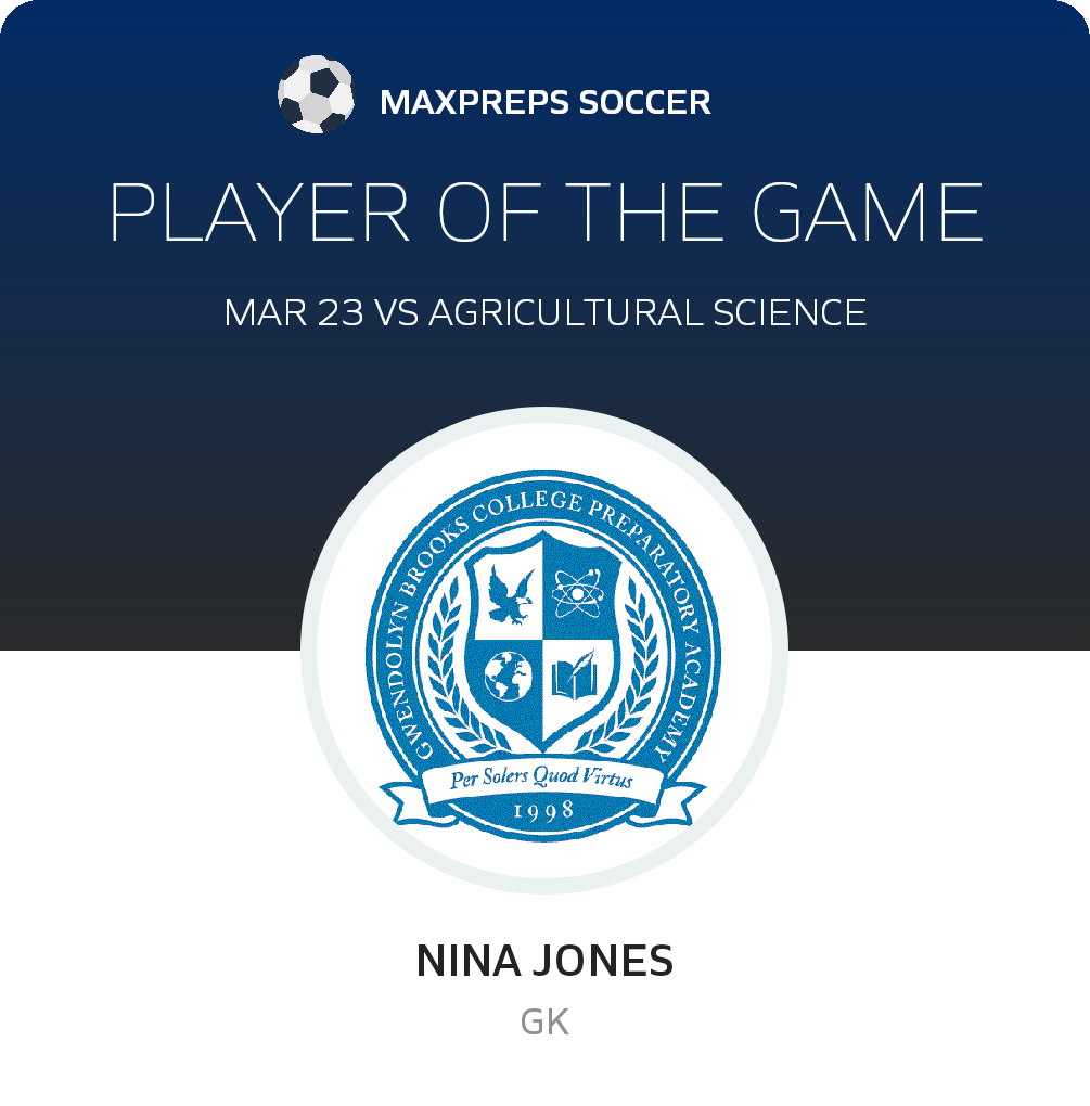 Congratulations to Nina Jones for being selected the Brooks Girls Soccer Player of the Match.