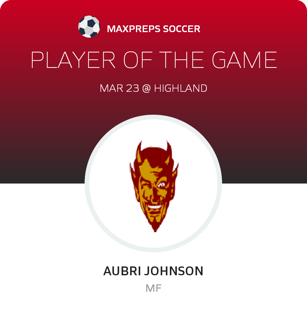 Congratulations to #10 Aubri Johnson for being selected the Murphysboro Girls Soccer Player of the Match.