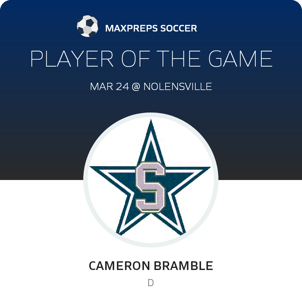 Congratulations to #6 Cameron Bramble for being selected the Siegel Soccer Player of the Match.