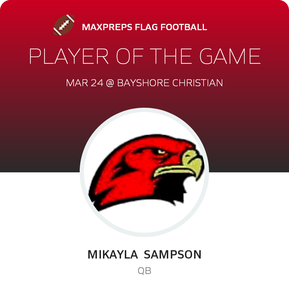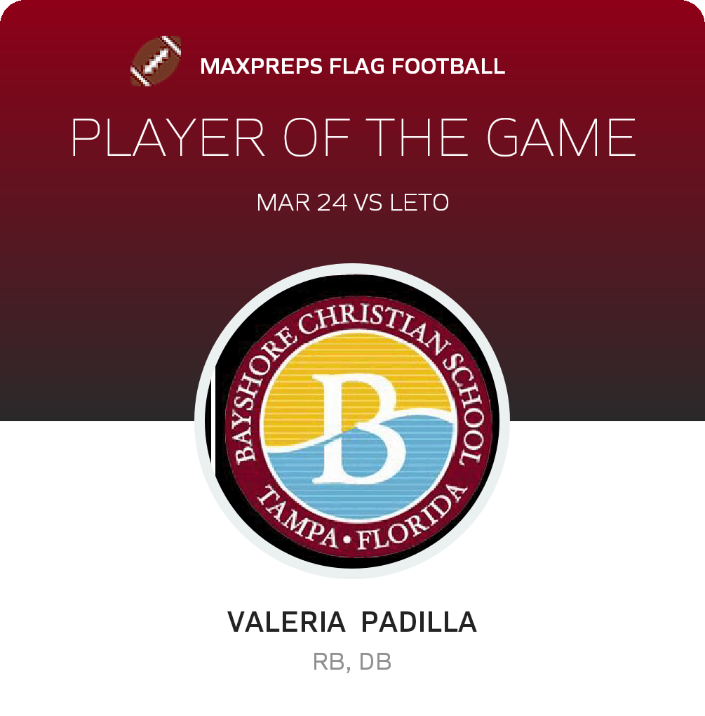 Congratulations to #8 Valeria Padilla for being selected the Bayshore Christian Girls Flag Football Player of the Game.