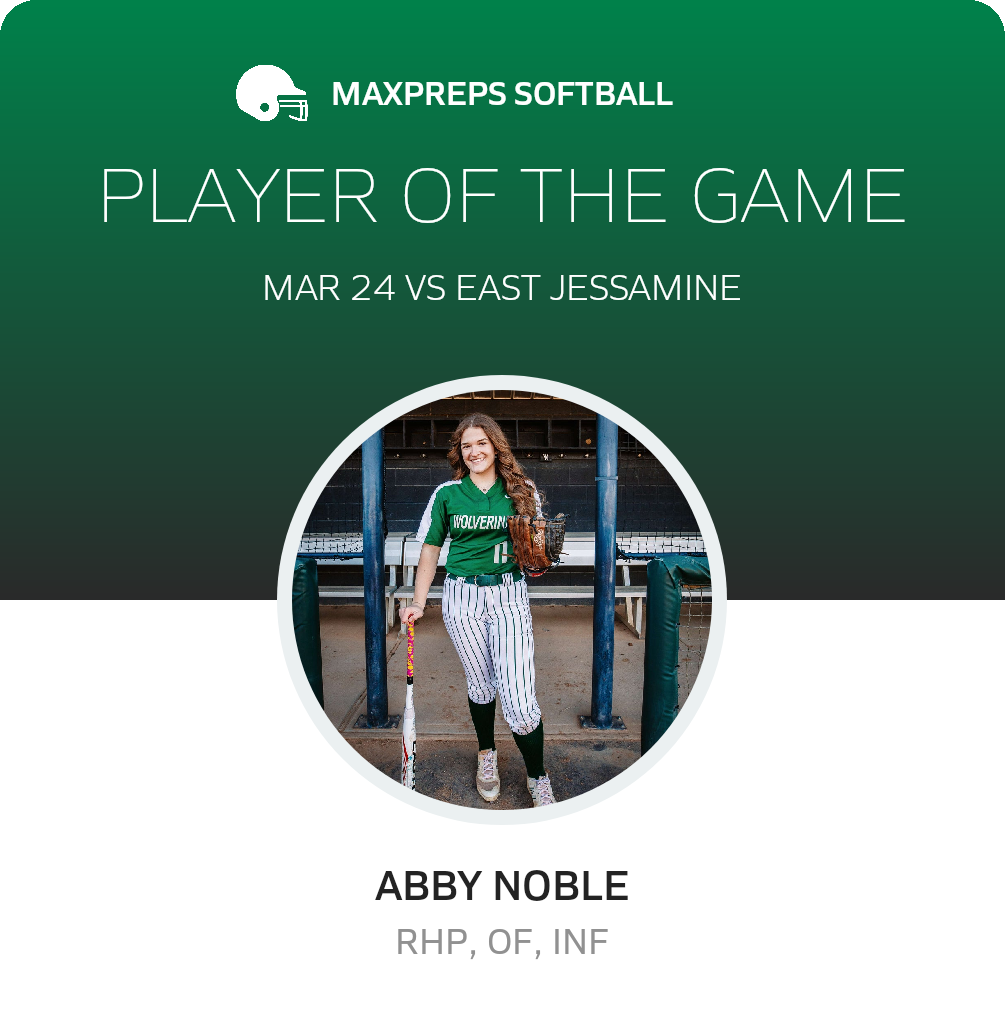 Congratulations to #11 Abby Noble for being selected the Western Hills JV Softball Player of the Game.
