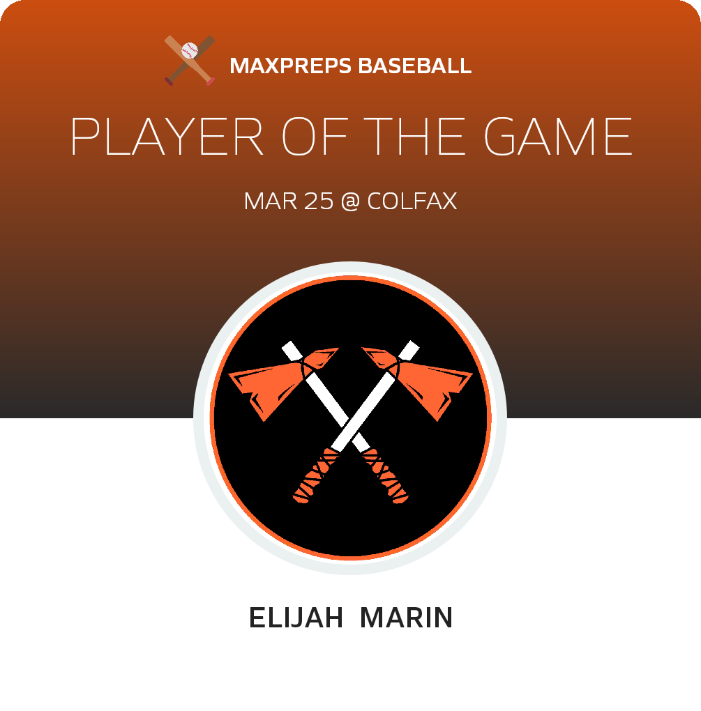 March 25, 2022: Colfax, CA 95713 The Marysville Indians (Marysville, CA) baseball nipped the host Colfax Falcons (Colfax, CA), 2-1 in Friday's league contest.