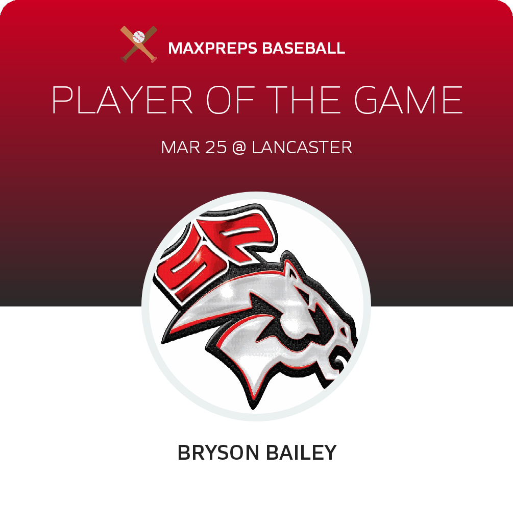 Congratulations to Bryson Bailey for being selected the South Pointe JV Baseball Player of the Game.